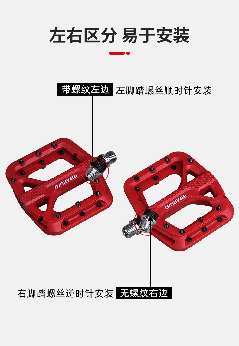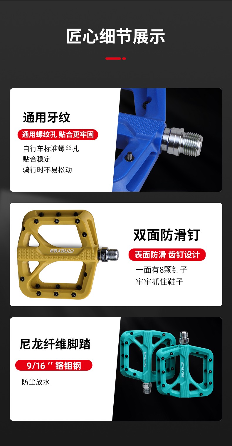 Gineyea碳纖維腳踏自行車公路車山地車防滑釘踩面鈦合金軸腳踏