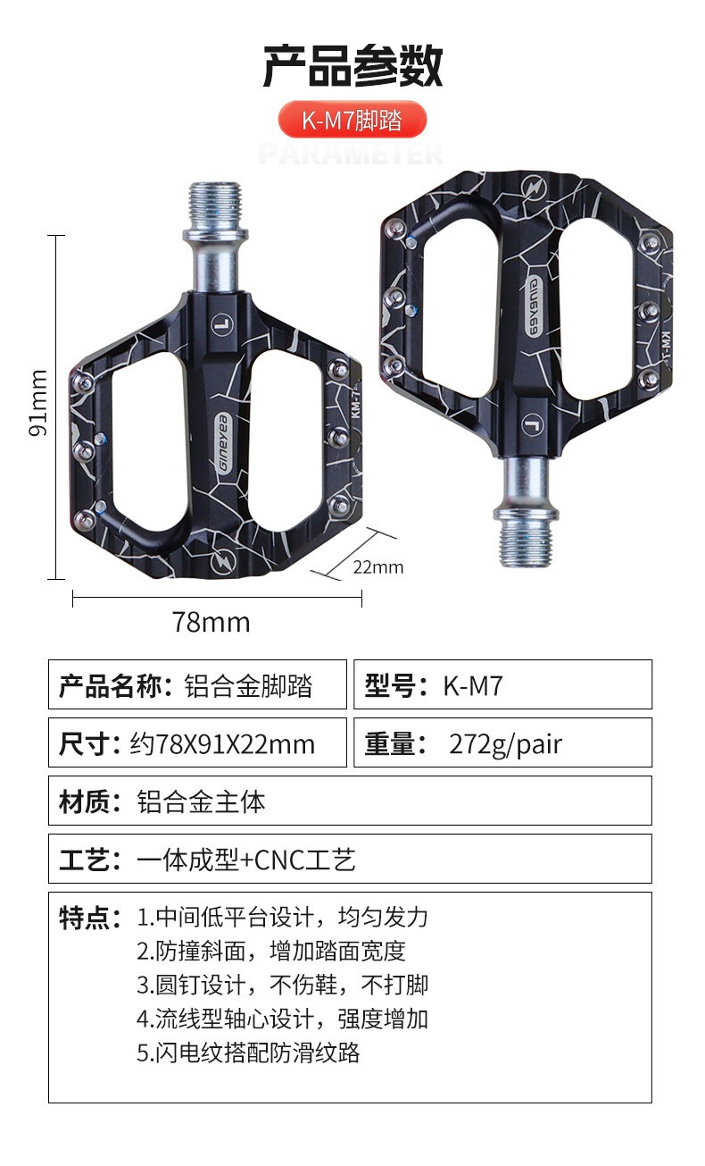景曄公路車腳踏板K-M7折疊車鋁合金小巧踏板DU培林腳蹬騎行零件