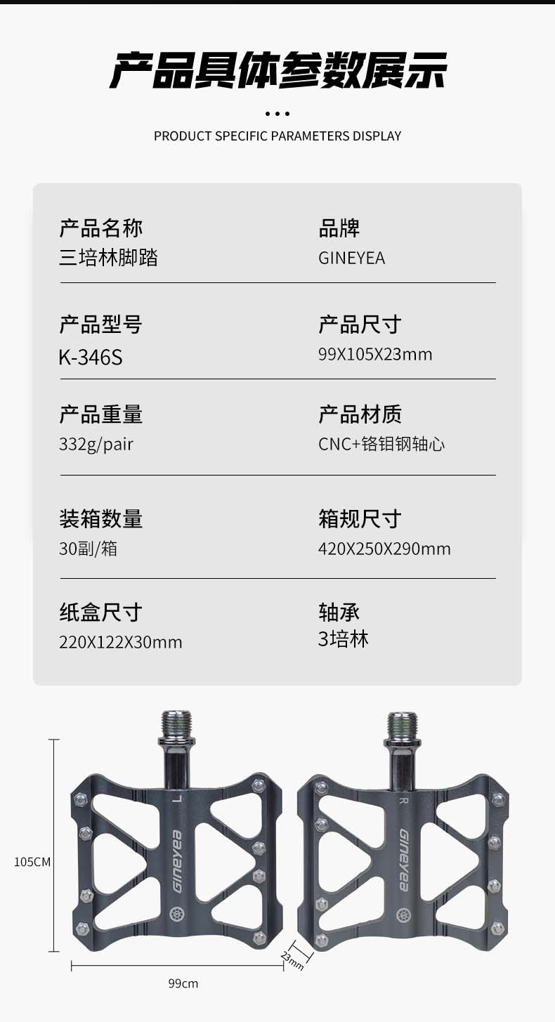 Gineyea碳纖維腳踏自行車(chē)公路車(chē)山地車(chē)防滑釘踩面鈦合金軸腳踏