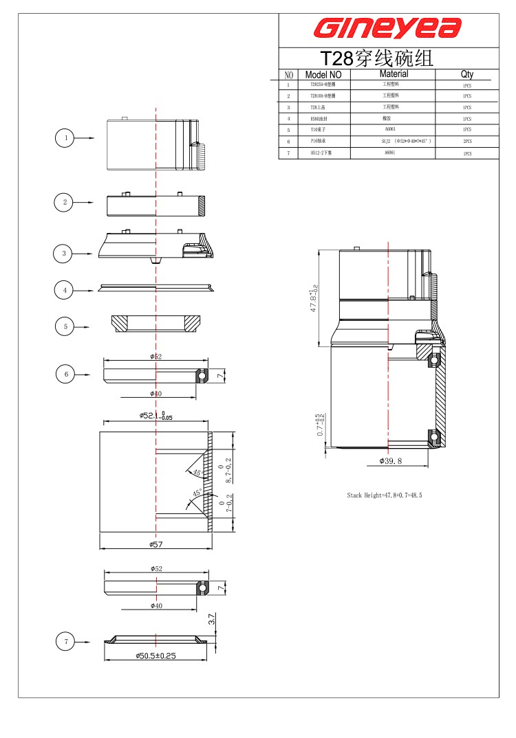 景曄直管穿線碗組44-44/52-52/改裝內走線穿線密封培林外置腕組