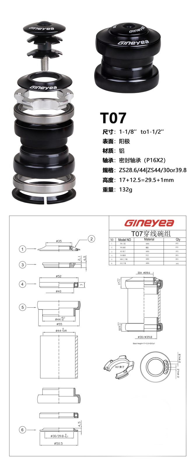 培林碗組41/41.8/52MM錐形培林山地公路車頭碗組頭碗全隱藏