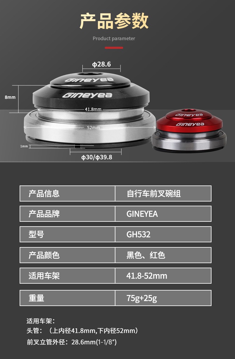 景曄自行車前叉碗組山地車雙培林軸承車頭腕組直管44-44mm