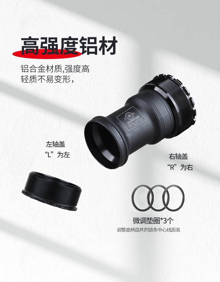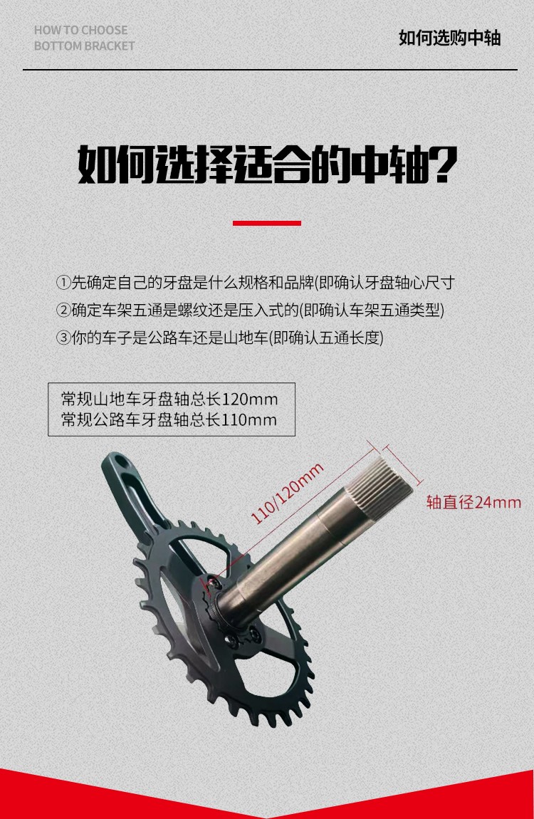 景曄山地自行車培林對鎖中軸中空一體牙盤BB中軸壓入式螺紋中軸