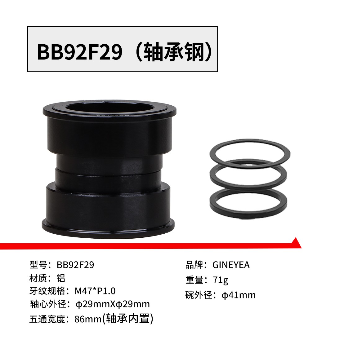 熱門款景曄41mm外徑一體式壓入/對鎖dub自行車培林密封軸承中軸