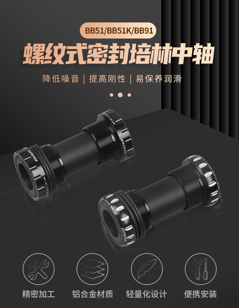 景曄山地自行車培林對鎖中軸中空一體牙盤BB中軸壓入式螺紋中軸