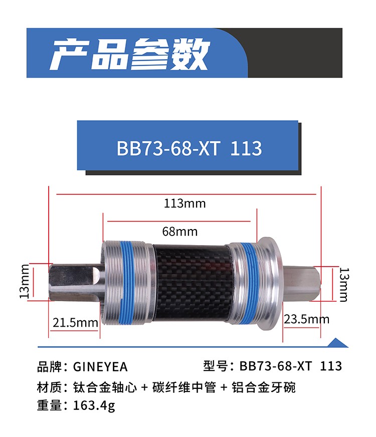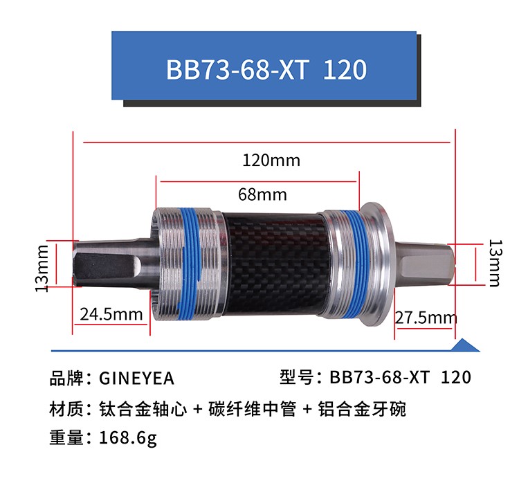 景曄鈦合金方孔中軸山地車改裝陶瓷珠中軸113/118/120/122.5