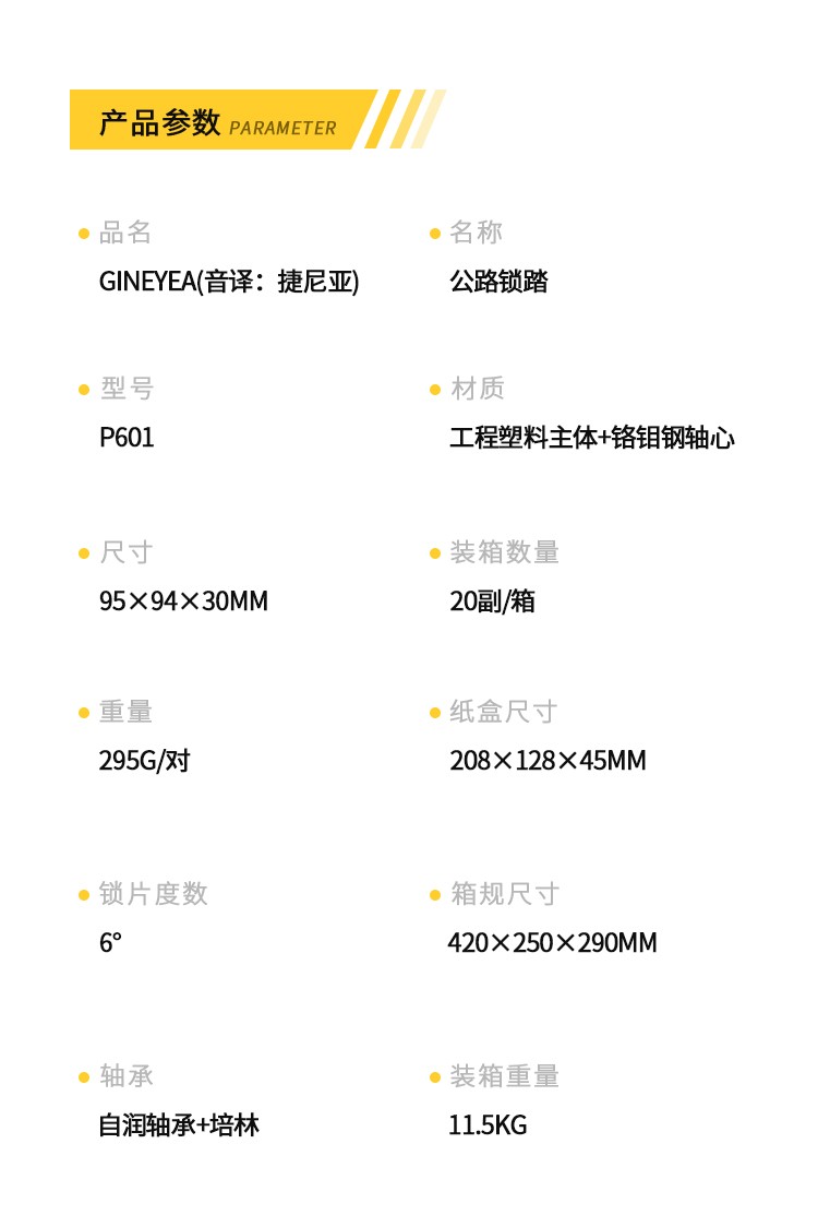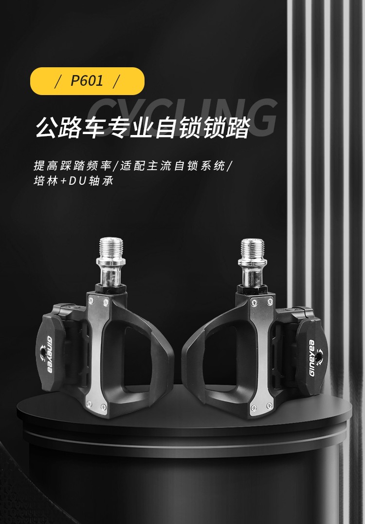 品牌:GINEYEA(捷尼亞) 型號:P601 品號:13010014 品名:公路車鎖踏PRO(附鎖片6°)黑色