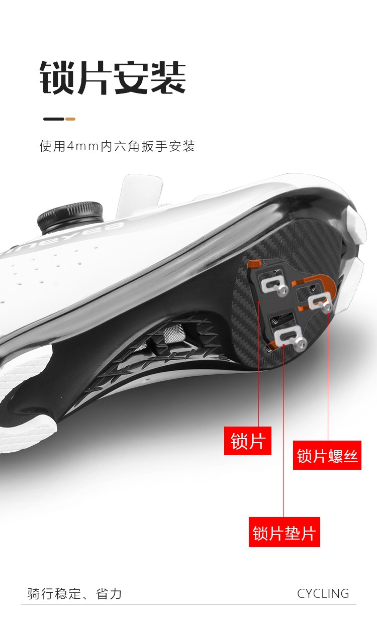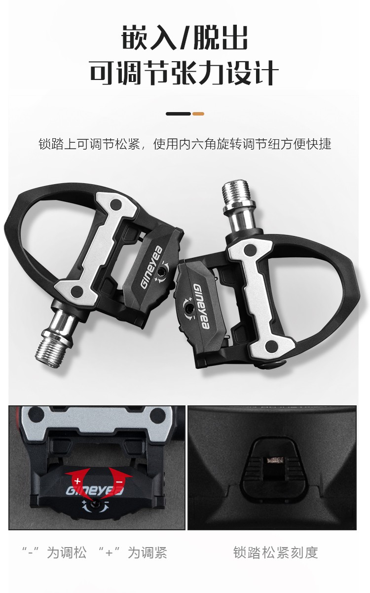 產品描述:品牌:GINEYEA(捷尼亞) 型號:P602 品號:13010426 品名:公路車鎖踏PRO(附鎖片6°)黑色執行標準:ISO4210 工藝:本體及扣片注塑成型材質:本體及扣片為工程塑料 軸心為鉻鉬鋼 顏色: 黑色/紅色/淺藍/橙色#公路車專業自鎖鎖踏,適用SPD-SL系統,自帶鎖片體驗不一樣的騎行速度、穩定、省力,踏板流線型一體化設計,高強度質量輕的尼龍材料加持,一對鎖踏僅重約278g,鎖片重量約88g,松緊度可調節的張力設置,靈...