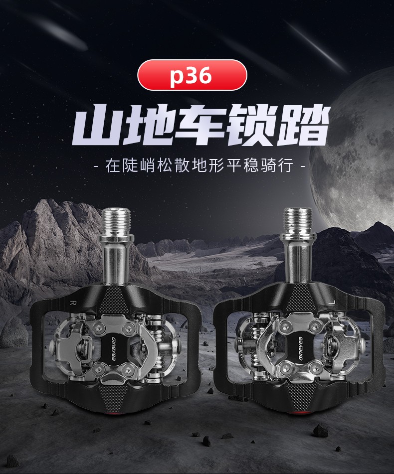 景曄山地自行車鎖踏P36鋁合金培林自鎖腳踏專業騎行鎖踏附扣片