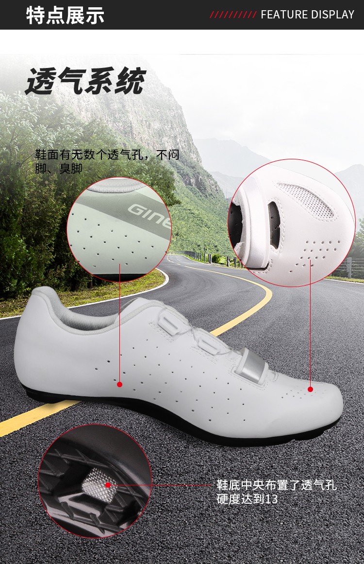 景曄新款炭纖維自行車公路鎖鞋14級(jí)硬度超輕碳纖公路旋鈕透氣騎行鞋